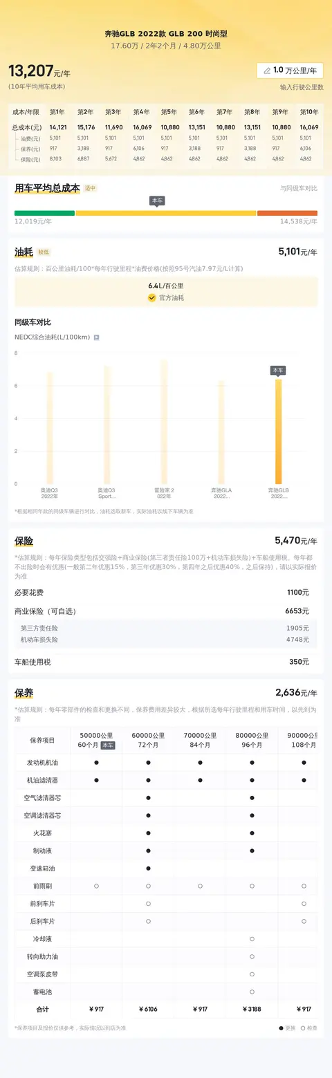 关于用车成本,我们对这款车在全国的车主用车成本做了大数据分析,具体结果如下: