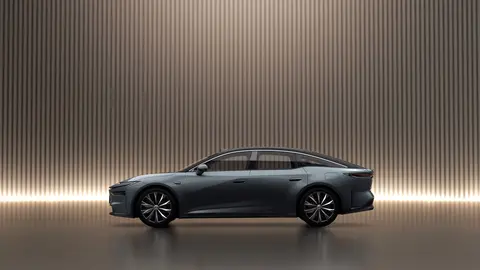 铂智 7 的造型语言,展现出丰田对「电动豪华」的重新诠释。溜背式轿跑车身风阻低至 0.21Cd,C 型贯穿灯带与激光雷达模块巧妙融合,尾部弧形曲面仿佛被风雕刻而成。黛云翠专属车色采用纳米级金属涂层,在不同光线下呈现渐变效果,这种「光影艺术」打破传统豪华轿车的沉闷设计。
