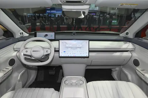 上海车展参展的人还真挺多的,我们趁着人较少的时候坐进车内拍了一张新车内饰图片,从实拍图中可以看到,新车内饰主打一个简洁风格,如果之前了解过星纪元ET(用车口碑),我想对新车的内饰也不会陌生,中央区域断层悬空的设计,让前排下层储物空间有更多的可能性,中控15.6英寸的车机屏幕全系标配到了高通8295芯片,算力性能比旧款骁龙8195芯片要快上不少,车机内除了常用的语音交互和导航功能之外,还新增有Carlink手机互联映射,能够连接到更多不同品牌的手机,方便主副驾在车机上投屏手机使用。
