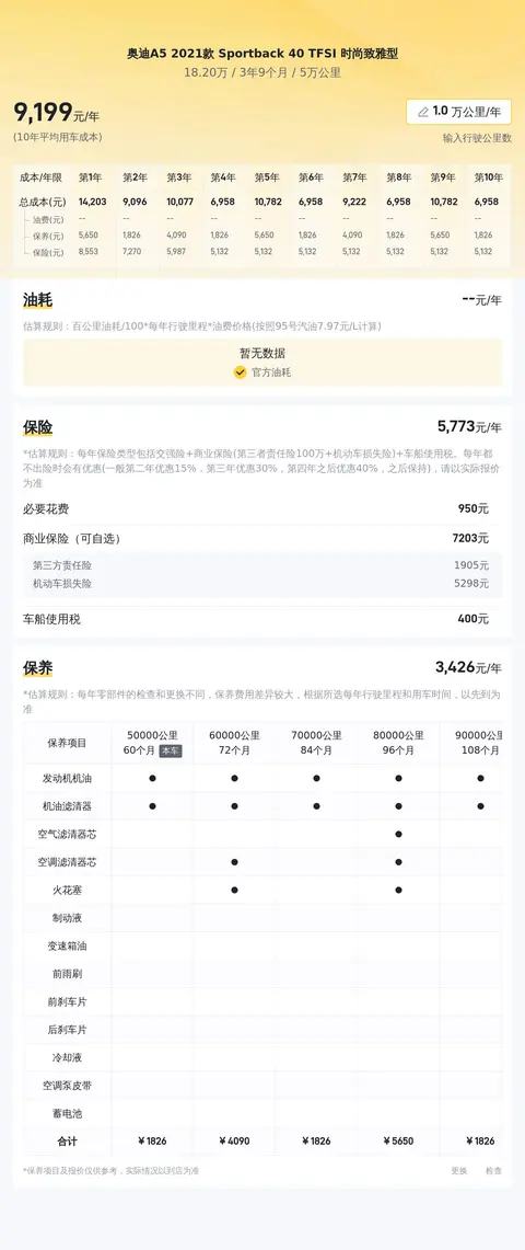 在用车成本方面,根据估算,这款车型的年均综合用车成本约为每年1.4万元左右,实际费用支出会根据车主的使用习惯和保养情况有所变动。