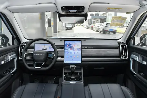 探索06四驱发现版配备有10.25英寸液晶仪表盘、13.2英寸中控屏,搭载高通骁龙8155车机芯片,提供苹果CarPlay/华为HiCar手机互联。同时车内配备有多功能真皮方向盘、皮质座椅、前门雨伞槽、6扬声器、后背门露营照明灯、540度全景影像、双区自动空调、50瓦手机无线充电等。