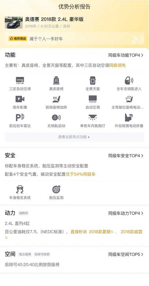 优势:定价比较实惠,奥德赛 2018款 2.4L 豪华版的市场行情价是12.76万-15.75万,它的报价则是11.30万。保值率比较高,后期折损较少。空间大,舒适性好,油耗低,用着省心。