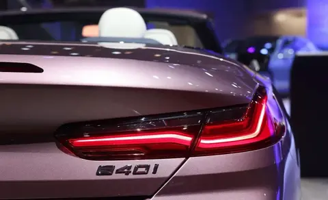 这是一台天鹅绒蓝配色的旗舰宝马8系(图片|配置|询价),宝马将自家的双门四座敞篷车称之为Convertible,双门两座敞篷车称之为Roadster,所以这台车应称为8系Convertible,底盘代号G14。