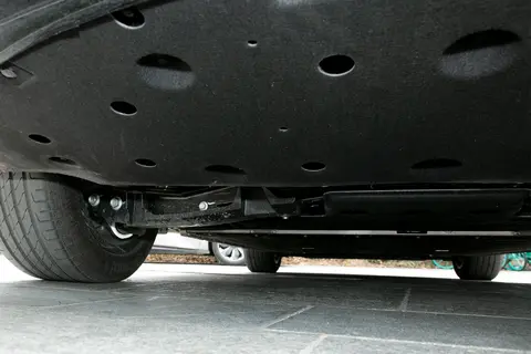 底部裙线上的黑色饰板是红旗天工05外观设计的一大亮点。其起伏的设计与车身的整体线条相呼应,进一步增强了车辆的灵动性。当车辆行驶在路上时,黑色饰板随着光线的变化闪烁着独特的光泽,为整车增添了一份神秘而时尚的气息。