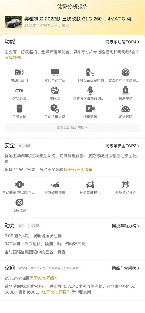 综上所述的新车含税价、用车成本、市场行情、优势分析、同款比价等数据仅供参考。在配置部分,因为二手车非标品,车辆可能会存在配置改装的情况,具体车况信息需要线下结合车辆实际情况进行综合参考。