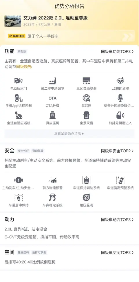 综上所述的新车含税价、用车成本、市场行情、优势分析、同款比价等数据仅供参考。在配置部分,因为二手车非标品,车辆可能会存在配置改装的情况,具体车况信息需要线下结合车辆实际情况进行综合参考。