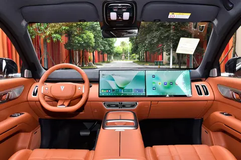 主副驾联屏支持分屏操作,驾驶员可专注导航与车辆信息,副驾则可独立娱乐或设置空调、座椅等功能。43 英寸 AR-HUD 将时速、导航、智驾状态等关键信息投射至前挡风玻璃,减少驾驶员视线转移,提升行车安全性。