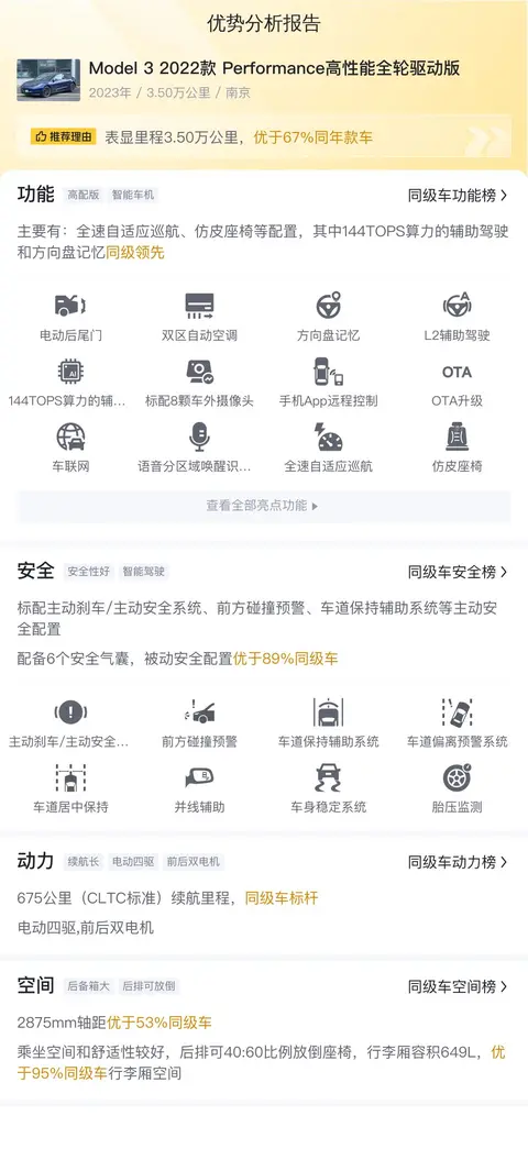 综上所述,Model 3 2022款 Performance高性能全轮驱动版在外观设计、动力性能、续航里程、内饰设计、功能配置等方面都表现出色,是一款集时尚、科技、性能于一体的电动汽车。尽管存在一些不足之处,但总体而言,这款车仍然是一款值得推荐的电动汽车,特别是对于那些追求时尚、科技和性能的消费者来说,Model 3 Performance高性能全轮驱动版无疑是一个理想的选择。