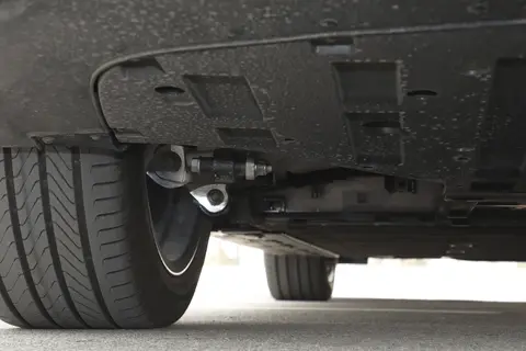 底盘采用前虚拟主销双叉臂(铝合金材质)+ 后多连杆独立悬架,前悬提升操控响应,后悬 H 臂结构保障行驶稳定性。过弯时车身姿态控制良好,但极限状态下,侧倾仍较为明显。采埃孚 CDC 连续阻尼可调减振器结合天钩控制技术,在颠簸路面能有效过滤震动,提升舒适性;高性能空气悬架支持四种高度模式与两种联动模式,可根据路况自动或手动调节车身高度。