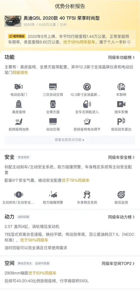 下面让我们先了解这辆二手奥迪Q5L的基础车况信息: