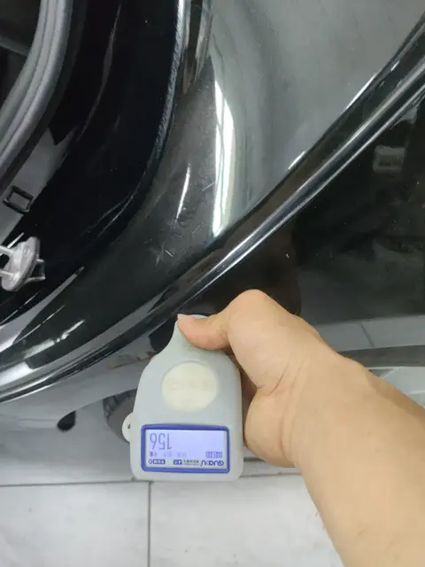外观检测部分,这辆车的表现一般,在外观部分还是存在一些瑕疵的,具体瑕疵项分别为:左后翼子板喷漆修复。