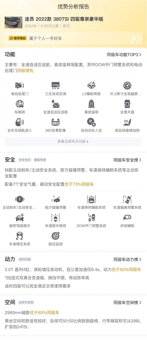 接下来,让我们聚焦这辆2022款大众途昂380TSI四驱尊崇豪华版的具体情况: