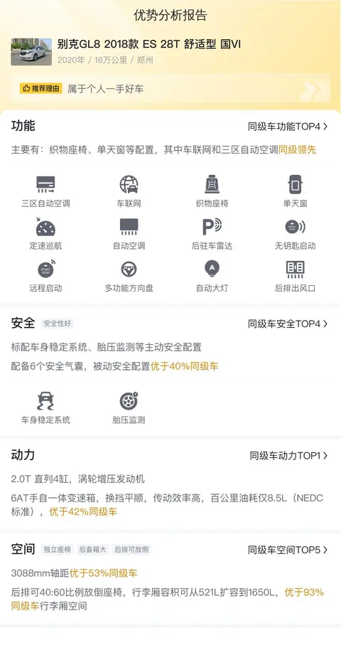 综上所述,这辆二手别克GL8 2018款 ES 28T 舒适型 国VI是一款性能可靠、内部空间宽敞且配置丰富的中型MPV。它适合那些寻找高品质商务与家庭出行解决方案的消费者。如果您正在寻找一款性能可靠、内部空间宽敞且配置丰富的中型MPV,那么这辆车绝对值得您考虑。当然,具体是否购买,还需要您结合实际体验和需求做出判断。