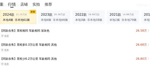 市场行情显示,这款车型的二手车价格区间在25.86万至31.65万元之间。实际售价受车辆状况、行驶里程及维护记录等因素影响。购买二手车时,建议您亲自查看车辆,确保车况良好,价格合理。