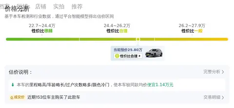 5. 价格因素:新车含税价为45.8万,而这款二手车的报价为25.8万,且里程数较少,车况良好,性价比较高。