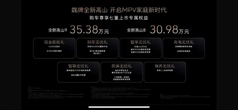 5 月 13 日,魏牌全新高山(图片|配置|询价)正式上市,推出全新高山 8、高山 9 两款车型,售价分别为 30.98 万元和 35.38 万元。作为一款中期改款车型,新车主要在外观、智能驾驶、智能座舱等方面进行了升级,基于新能源 MPV 专属平台打造。据发布会期间长城汽车总裁穆峰透露,全新高山自 4 月 21 日开启预售以来,订单已突破 18,000 辆,全国直选店的 327 辆试驾车累计试驾达 3.4 万人次,总试驾里程超 58 万公里。