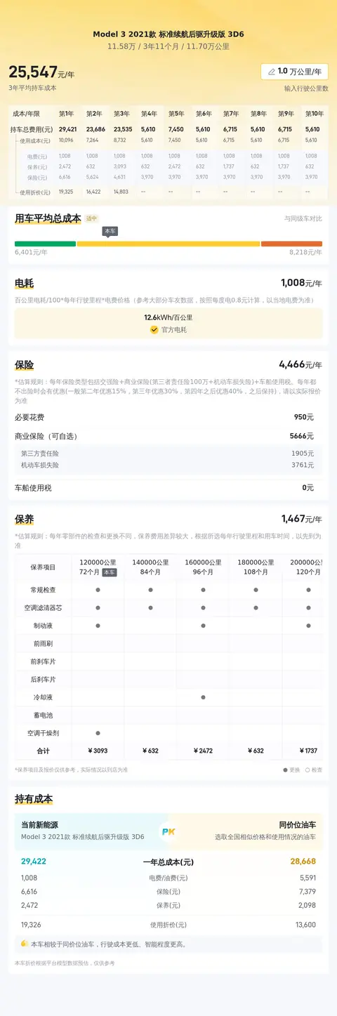 大家一定都比较关心这辆车的用车成本,根据懂车帝官方的大数据分析,该车的10年平均用车成本大约是26,441元/年,而同级车最低10年平均用车成本是19,869元/年,最高是31,530元/年,所以该车的用车成本适中。