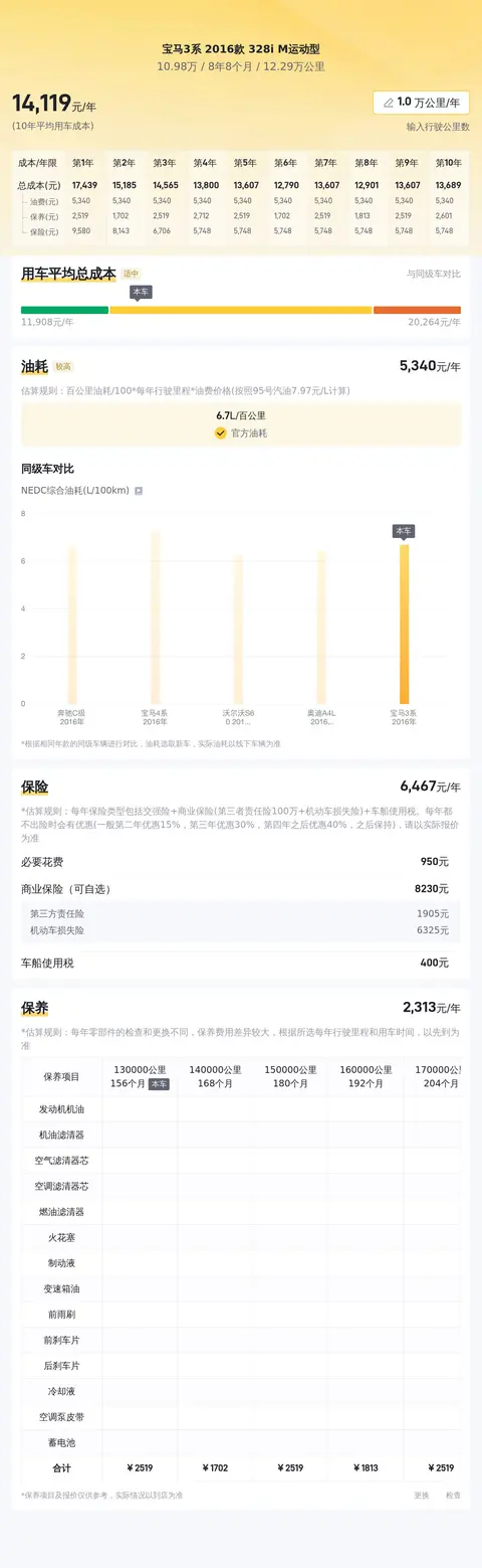 先来看看这辆二手宝马3系 2016款 328i M运动型的基本情况,该车属于宝马3系家族中的一个细分车型,特别强调运动性能和驾驶乐趣。外观方面,这款车具有鲜明的个性和较高的辨识度。车内搭载了一台2.0T涡轮增压发动机,能提供强劲的动力输出。车辆的表显里程为12.29万公里,上牌日期为2016年8月,来源于重庆,共有4次过户记录。车辆的新车指导价为45.20万,目前二手车报价为10.98万,相较于新车指导价便宜了34.22万。车身颜色为蓝色,关于这一点需要特别指出的是,蓝色属于冷门颜色,这将在一定程度上影响车辆的价格。