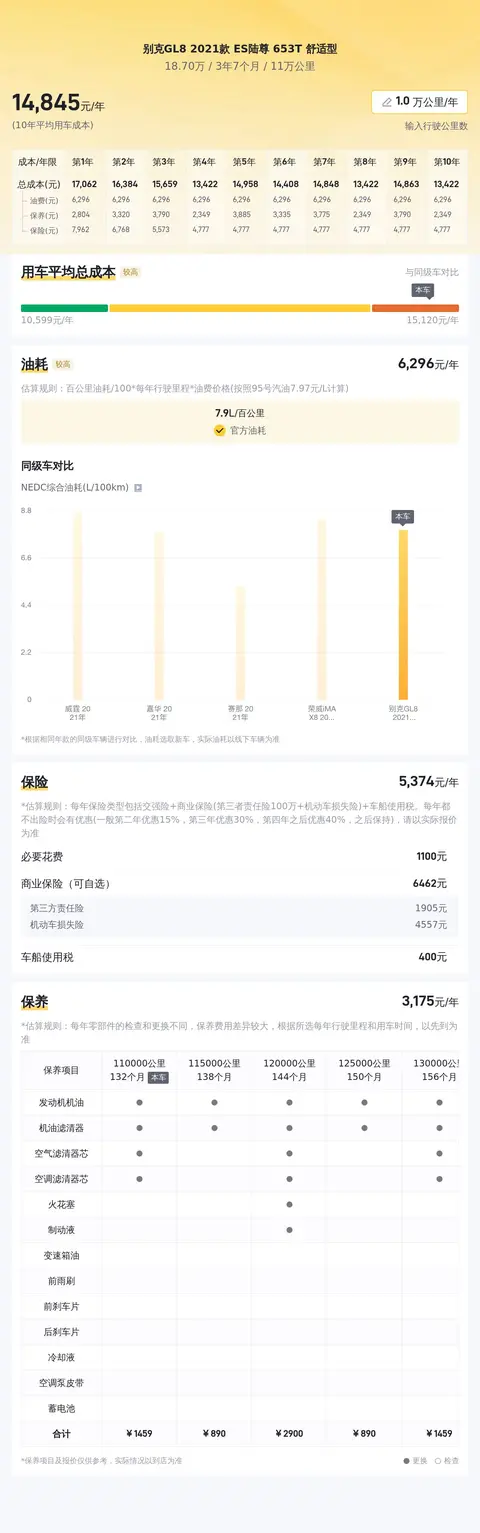 在市场行情部分,根据大数据分析,该车的售价在二手车市场中处于较为合理的水平。考虑到该车的车况良好、里程数适中等因素,这样的价格可以说是相当实惠的。在用车成本部分,根据估算,未来10年的平均用车成本大约在15166元/年左右。这对于一款豪华MPV来说是一个相对合理的水平。在同款比价部分我们筛选了一些同款车型的售价,可以给您提供一些价格方面的参考。