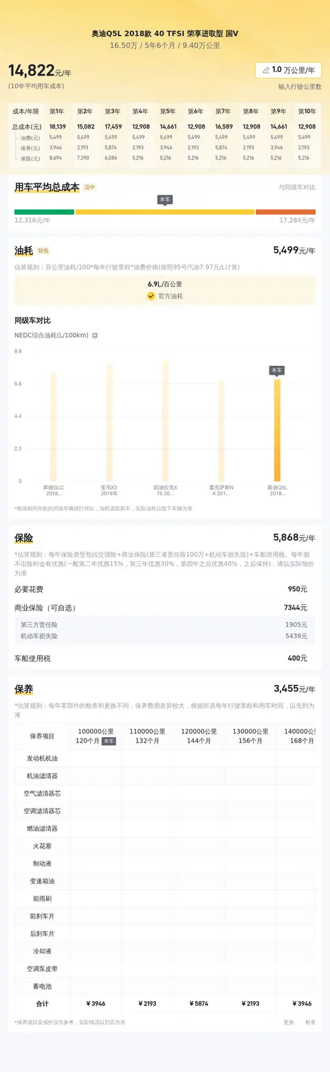 年度用车成本方面,按一年行驶一万公里计算,该型车辆的年度用车成本约14678元(包括保险、保养以及其他费用)。需要注意的是,具体年度用车成本可能会根据用车频率、油价波动、保养质量等因素有所变动。