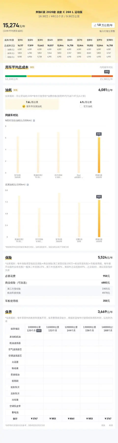 总结:在选购二手车时,应综合考虑车辆的性能、配置、价格及用车成本等因素。这辆奔驰C级 2020款 改款 C 260 L 运动版在动力性能、内饰配置及安全配置等方面均表现出色,且售价合理。希望这篇文章能够在您选购车型的时候有所帮助。