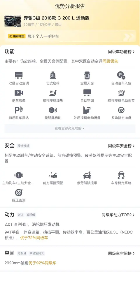 奔驰C级(图片|配置|询价)作为德国豪华汽车品牌中的一个经典车系,以其独特的品牌魅力和设计风格在豪华轿车市场中独树一帜。它的历史演变、设计理念以及在市场中的地位与影响,使其成为消费者心中的理想选择。今天我们就为您带来一辆二手奔驰C级,具体版本为奔驰C级 2018款 C 200 L 运动版。