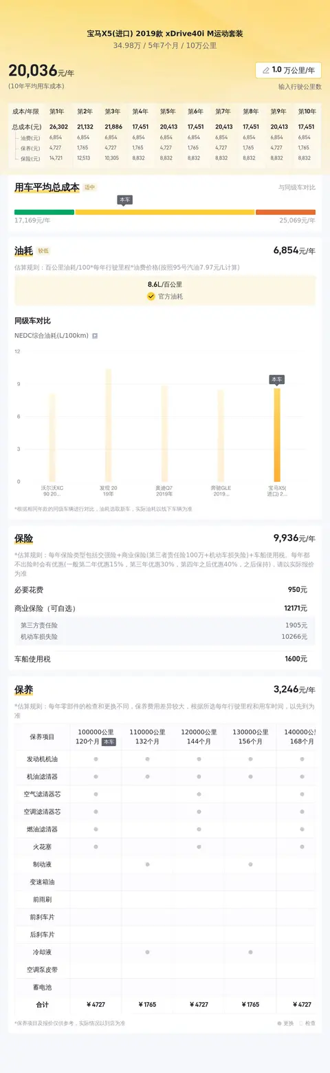 二手车一车一况,一况一价,这辆宝马X5(进口) 2019款 xDrive40i M运动套装在懂车帝市场行情的大数据分析下,综合性价比指数为79%,是一个相当不错的水平。在用车成本部分,根据懂车帝对这款车的大数据分析,得出这款宝马X5(进口) 2019款 xDrive40i M运动套装的10年平均用车成本约为21707元/年,是一个合理的用车成本水平。