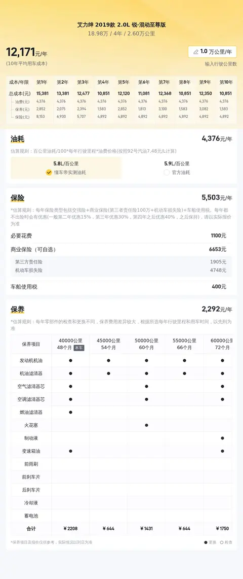根据懂车帝大数据分析,这辆艾力绅的售价在二手车市场上相当具有竞争力。此外,这款车属于全国同款在售车型Top6,进一步凸显了其市场热度。作为一款高端MPV,艾力绅在油耗方面也表现不俗。其NEDC综合油耗仅为5.9L/100km,这一数据优于55%同级车型,让驾驶更加经济实惠。在用车成本方面,艾力绅同样表现出色。其年均综合用车成本约为12,170元,这一数据优于55%同级车型,让驾驶更加经济实惠。