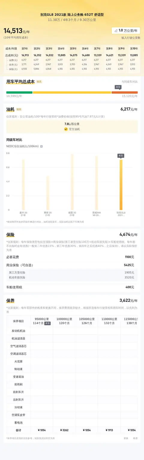 在用车成本方面,根据估算,这辆车的年均综合用车成本约为1.5万元左右。这包括油费、保养费和保险费等日常开支。需要注意的是,实际费用可能会因个人驾驶习惯和车况维护水平而有所差异。