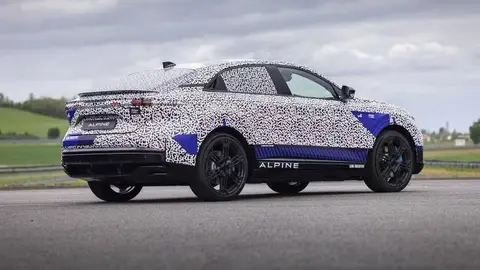 内饰方面,概念车配备了赛车风格方向盘、实体按键、中控副驾显示屏,并采用四座布局。外观上,概念车搭载了22英寸轮圈,轮圈面板为透明设计,可直接看到扭矩矢量控制技术。此外,车辆还搭配肌肉感十足的轮拱、水晶风格的前后贯穿灯带、隐藏式门把手、借鉴A110的车窗轮廓,以及后扰流板和扩散器。顶配车型预计将采用三电机动力架构,但具体性能尚未公布。