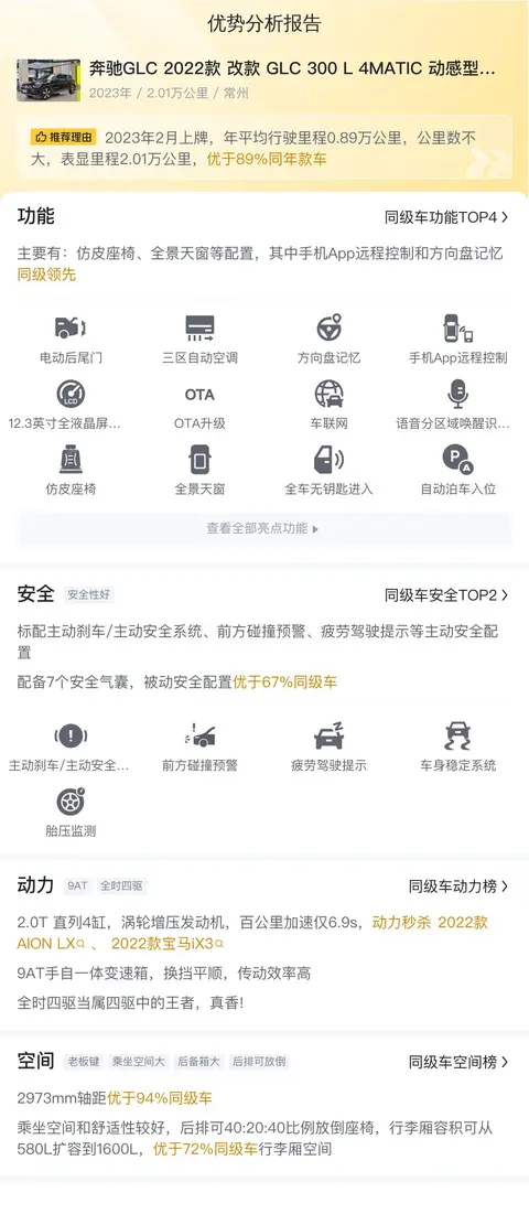 综上所述的新车含税价、用车成本、市场行情、优势分析、同款比价等数据仅供参考。在配置部分,因为二手车非标品,车辆可能会存在配置改装的情况,具体车况信息需要线下结合车辆实际情况进行综合参考。
