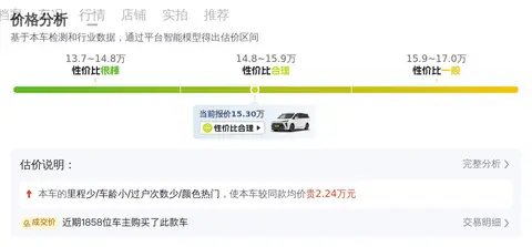 二手车的价格说到底还是要看具体的车况表现,以车况决定最终价格。这辆车目前的二手车报价为15.3万元,相比新车指导价为25.89万元,具有较高的性价比。从市场行情来看,该车价格较为合理,是一个不错的选择。