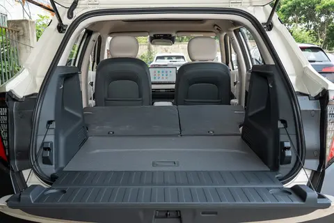 空间这块纳米 06 直接 “降维打击”:2715mm 轴距比缤果 PLUS 长 105mm,1 米 8 的大汉坐后排,腿部空间超过两拳,头顶还有一拳余量,完全不压抑。后备箱常规容积 500L,放倒后排后能扩展到 1040L,相当于能装下 4 个 28 寸行李箱 + 婴儿车,搬家、露营啥的都够用。最贴心的是后备箱地板下还有隐藏储物格,放个充电枪、急救包啥的很方便。