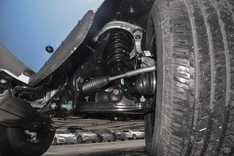 豹5的越野能力是其核心卖点之一。云辇-P智能液压悬架系统可调节离地间隙220-310mm,接近角35-39°,离去角32-35°,纵向通过角20-27°,轻松应对复杂地形。我曾在一次越野活动中测试豹5的爬坡能力,面对40°陡坡,智能电四驱与三把锁的配合让车辆稳如磐石,动力输出平顺且强劲。