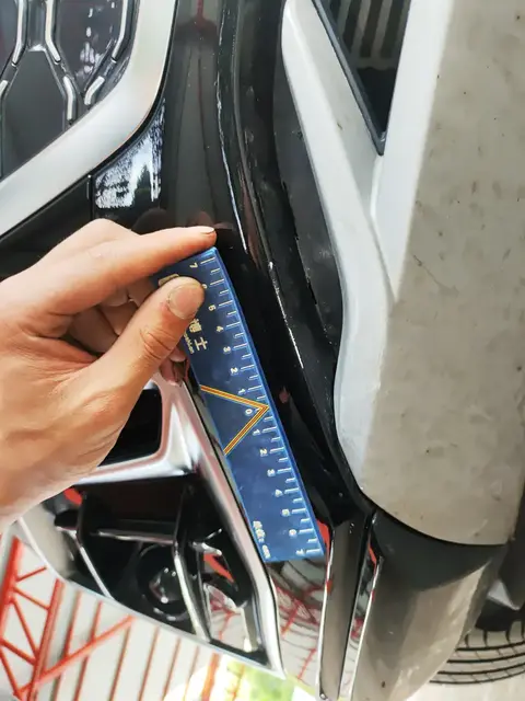 前保险杠有喷漆修复的痕迹,有可能是前任车主在此处发生了碰撞,导致保险杠破裂,后期更换了保险杠并进行了喷漆修复;