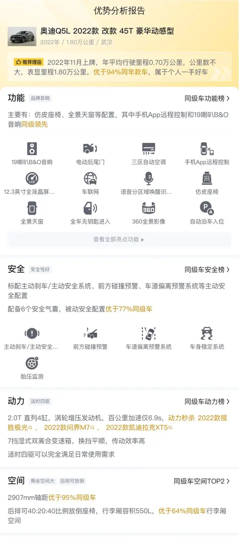 买二手车,车况永远是买家关注的核心,除了上述车况信息外,我们总结了这辆车的优势分析报告,希望可以帮助到您。