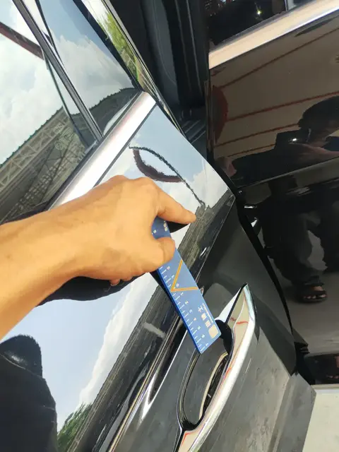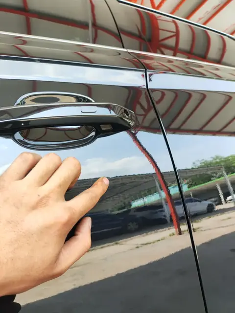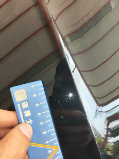 左后门有钣金修复的痕迹,钣金修复一般是指对车辆的钢板进行修理和加工,以恢复其形状、强度和美观性的过程。这个受损程度一般比较轻微,不影响车辆正常使用;