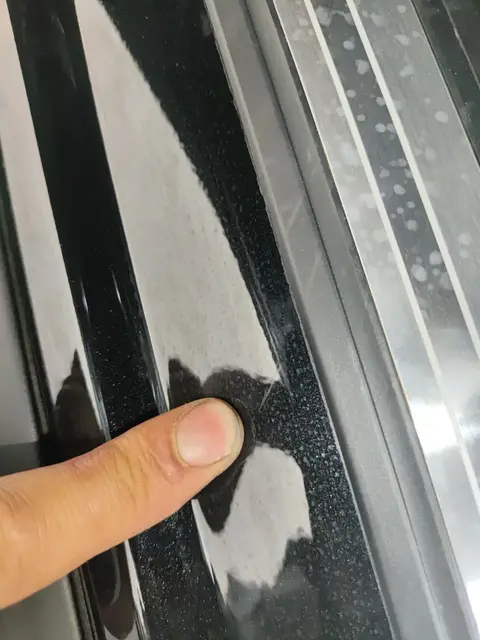 右B柱封边有划痕,B柱封边属于车身覆盖件,一般受到磕碰都会产生划痕,严重一点的就是变形。这些覆盖件其实和我们常说的皮外伤是一个道理,外层受损,但是不影响车辆正常使用。