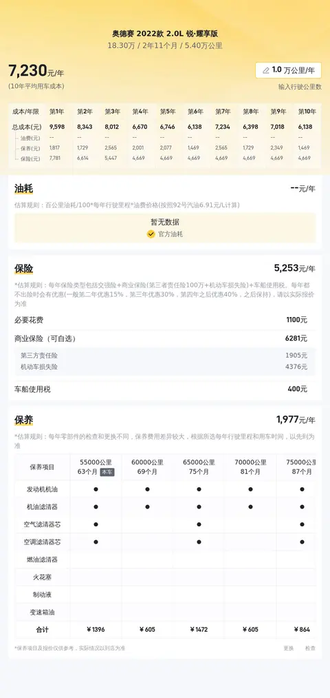 养车成本这块,懂车帝平台数据显示,与同级别车相比,奥德赛 2022款 2.0L 锐·耀享版的养车成本较低,十年大约12.9万元,当然了,这个跟每个人的用车习惯会有不同,所以具体花多少钱,还是以实际为准。