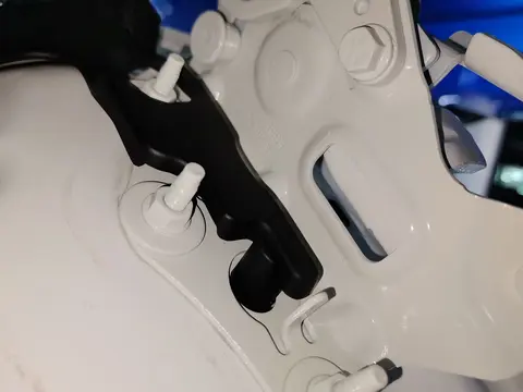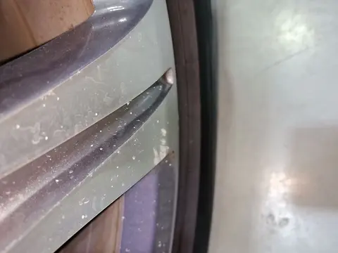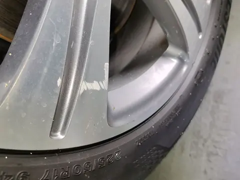 在外观检测部分,这辆车的表现一般,可能是前任车主的驾驶技术一般,或者对车辆使用并不是很爱惜。在外观部分的瑕疵还是比较多的,具体的瑕疵项分别为:发动机盖喷漆修复、右前门喷漆修复、右后门钣金修复、左前轮毂剐蹭、右前轮毂剐蹭、左后轮毂剐蹭、右后轮毂剐蹭、右后翼子板钣金修复、右前大灯更换、发动机舱盖铰链(合页)拆卸痕迹。下面我们将为您展示这些瑕疵项的实拍图。