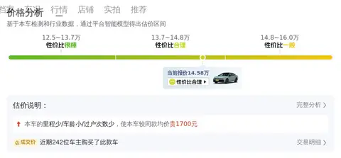 再来说说价格。当前市场上,这位“绅士”的行情可是相当不错的。根据车况和里程数等因素综合评估,他的价格在13.62万至16.27万之间。而咱们今天要说的这位“绅士”,他的报价可是相当有诚意的——14.58万!这个价格在同级别车型中颇具竞争力,如果你想拥有一位性能卓越、品质可靠的“商务伙伴”,那么,他绝对是一个不容错过的选择。更何况,他还如此年轻,里程数也不多,简直就是“物美价廉”的典范啊!如果你正在寻找一辆性价比高的二手车,那么这位“绅士”绝对值得你考虑。毕竟,机会总是留给那些善于发现的眼睛的!来吧,给这位“绅士”一个机会,也给自己一个机会,让他陪伴你走过更多的精彩旅程吧!