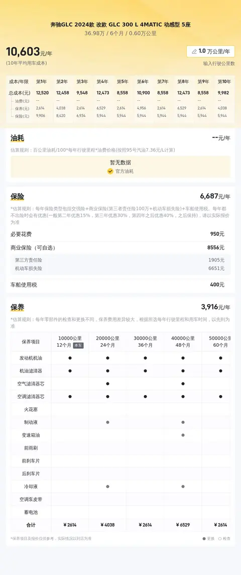 这款车的10年平均用车成本为每年16386元,其中包括油费、保养费和保险费。具体费用可能根据车主的驾驶习惯和用车环境等因素有所不同。