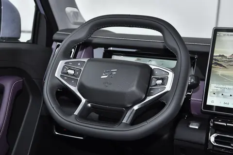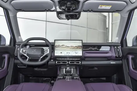 内饰方面,捷途山海T1星月女神版采用紫色与黑色搭配的颜色方案,提供10.25英寸全液晶仪表、上下平底式方向盘、15.6英寸悬浮式中控屏、电子换挡杆等元素,其配置水平与2024款捷途山海T1向海版保持一致,具有360度全景影像、透明底盘、全速自适应巡航、全景天窗、电动尾门、50瓦手机无线充电、前排座椅通风加热等配置。