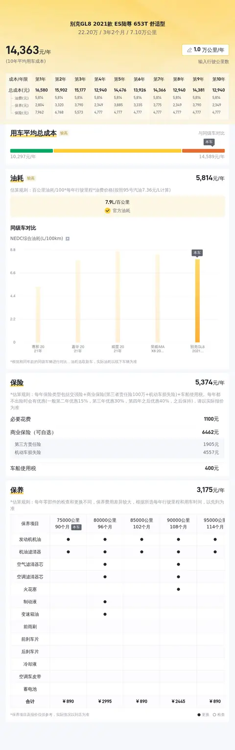 关于用车成本方面,根据懂车帝数据显示,别克GL8 2021款 ES陆尊 653T 舒适型的10年平均用车成本约为13617元/年,具体费用包括燃油、保养、保险等方面。值得注意的是,由于地区差异、使用习惯及车辆状况等因素的影响,实际用车成本可能会有所差异。建议潜在车主在购买前,结合自身情况和车辆实际情况进行综合评估,以合理规划用车预算。关于市场行情,懂车帝大数据分析,该车在市场价中价格属于偏高的,保值率也较高,预计未来三年内折价较少。