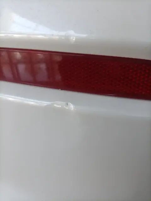 在外观检测中,后保险杠、前风挡玻璃、右后尾灯都有轻微的瑕疵,但不影响整车的美观,具体瑕疵如下图所示。
