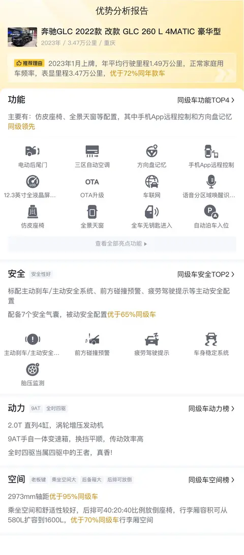综上所述的新车含税价、用车成本、市场行情、优势分析、同款比价等数据仅供参考。在配置部分,因为二手车非标品,车辆可能会存在配置改装的情况,具体车况信息需要线下结合车辆实际情况进行综合参考。