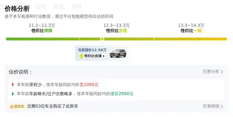 根据大数据预估显示,这辆车的市场价格在11.77万元至14.12万元之间。具体的价格因车辆的车龄、里程、过户次数、颜色等因素而异。值得一提的是,这款车的颜色为白色,属于市场需求量大的颜色,较黑色、灰色等颜色更保值,这也反映在了车辆的评估价格上。