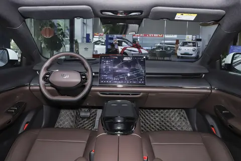 内饰材质主要是软质包裹,搭配镀铬饰条点缀,看起来挺精致。座椅填充物偏硬,高配车型主副驾都支持电动调节和通风、加热,但入门版只能手动调节,舒适性配置差异较大。而启源A07的内饰则更偏向豪华感,环抱式座舱搭配大面积软质材料和木质纹理饰板,乌木棕的配色让人一坐进去就有种温馨的感觉。