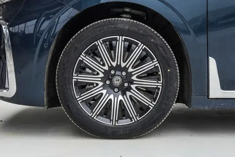 车身侧面线条舒展流畅,没有生硬的棱角,给人以稳重而优雅的感觉。最具巧思的是车身上 34 根原创对称的华柱设计,这些华柱整齐排列,不仅增加了车身的精致感,更象征着全国人民团结一心的美好寓意。远观时,车身线条流畅自然;近看时,华柱细节又能让人感受到设计者的用心。车身比例协调,作为中大型 MPV,却丝毫不会给人笨重的感觉,反而显得灵动而稳重。