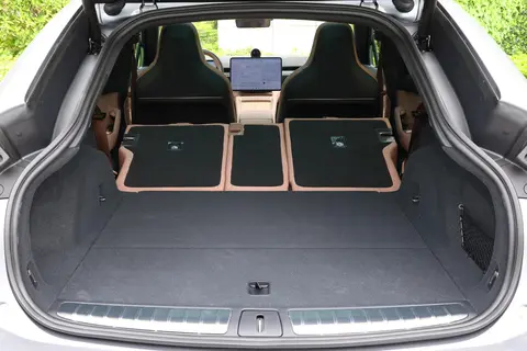 车内整体软包用料豪华,但饰品采用得很少,观感上简约大气,没有那种过度堆砌的感觉。岛台上的实体按键非常少,空间预留给了双手机无线充电面板和开合式杯架,下方做了镂空处理,方便放置物品。整车这样精巧的储物空间设计共有 26 处。在常规状态下,后备箱的储物空间为 532L,将二排座椅放倒后,这一空间能拓展至 1435L,放下小提琴、帐篷、滑雪板等物品都很轻松。而且,车内乘用空间也很宽裕,轴距达到了 2915mm,身高 1.8 米的乘客坐在后排,膝部空间仍有 2 拳余量。